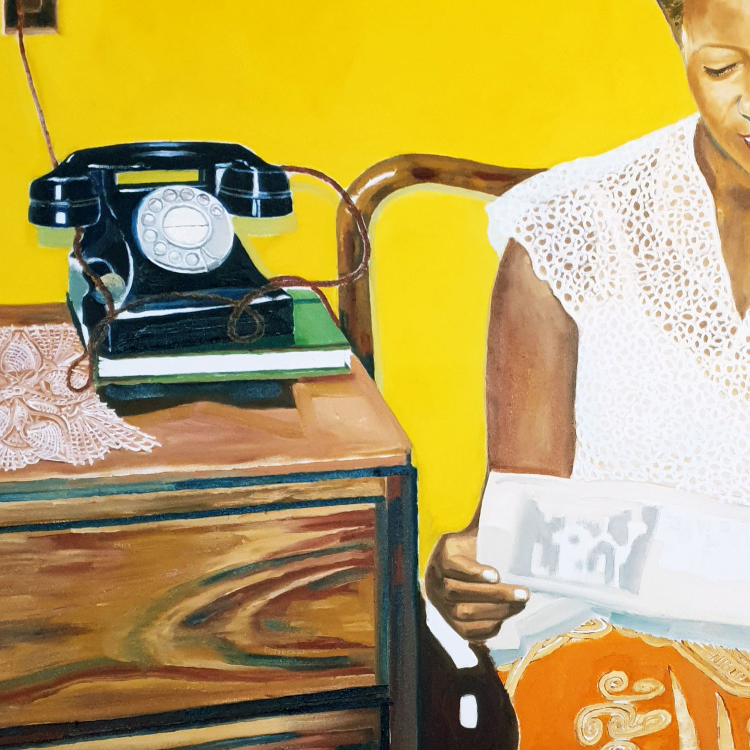 Arthur Timothy is an architect and painter whose works depict close family members and autobiographical events, specifically in Accra, Ghana where the artist was born, and Sierra Leone, where he lived until the age of 9. The paintings are inspired by small black and white family photographs and are imbued with vibrant colour, added from his memory and imagination, which update and bring life to the original imagery.