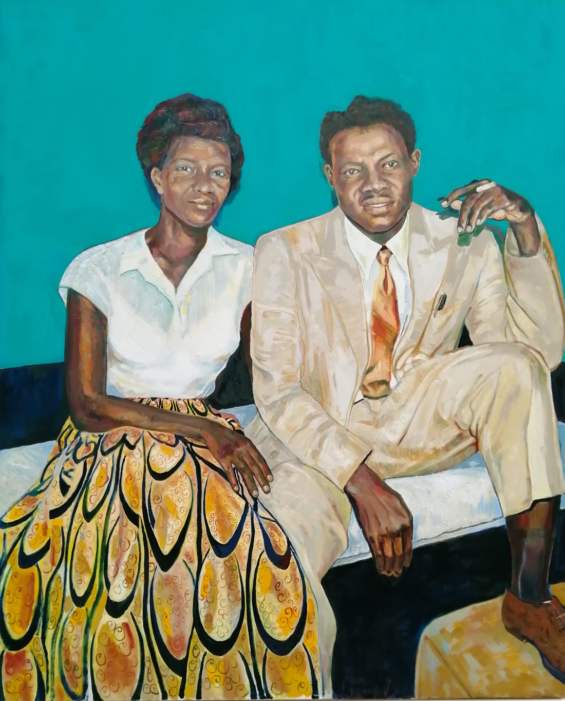 Arthur Timothy is an architect and painter whose works depict close family members and autobiographical events, specifically in Accra, Ghana where the artist was born, and Sierra Leone, where he lived until the age of 9. The paintings are inspired by small black and white family photographs and are imbued with vibrant colour, added from his memory and imagination, which update and bring life to the original imagery.