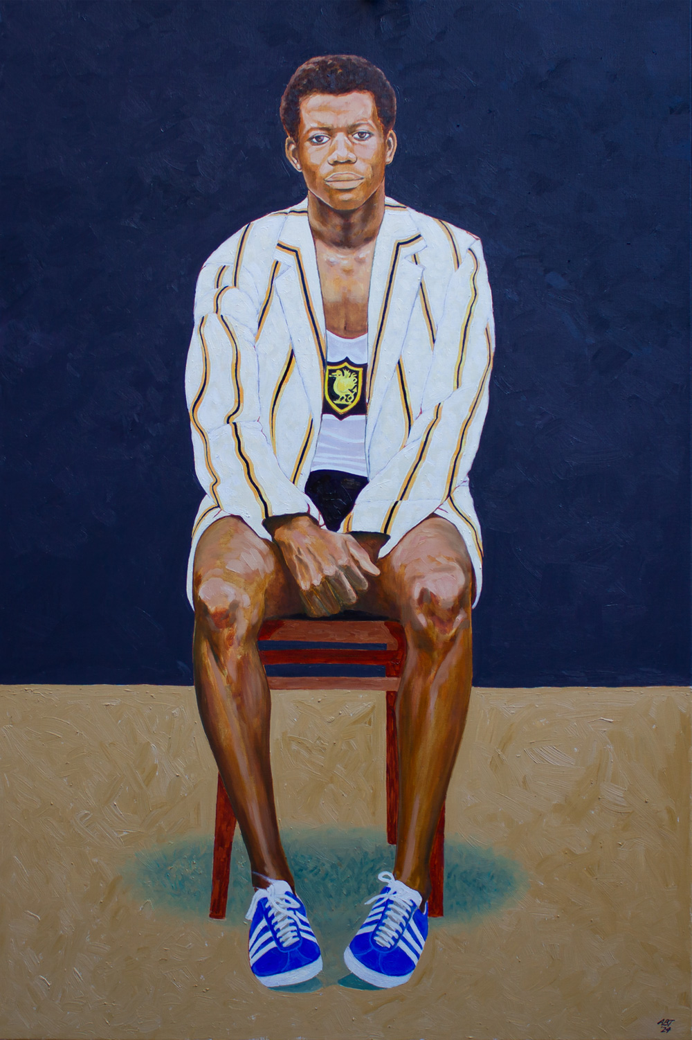 Arthur Timothy is an architect and painter whose works depict close family members and autobiographical events, specifically in Accra, Ghana where the artist was born, and Sierra Leone, where he lived until the age of 9. The paintings are inspired by small black and white family photographs and are imbued with vibrant colour, added from his memory and imagination, which update and bring life to the original imagery.