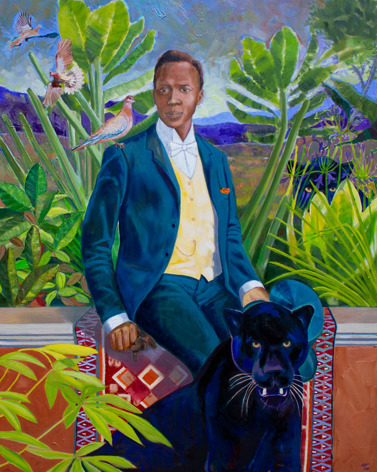 Arthur Timothy is an architect and painter whose works depict close family members and autobiographical events, specifically in Accra, Ghana where the artist was born, and Sierra Leone, where he lived until the age of 9. The paintings are inspired by small black and white family photographs and are imbued with vibrant colour, added from his memory and imagination, which update and bring life to the original imagery.