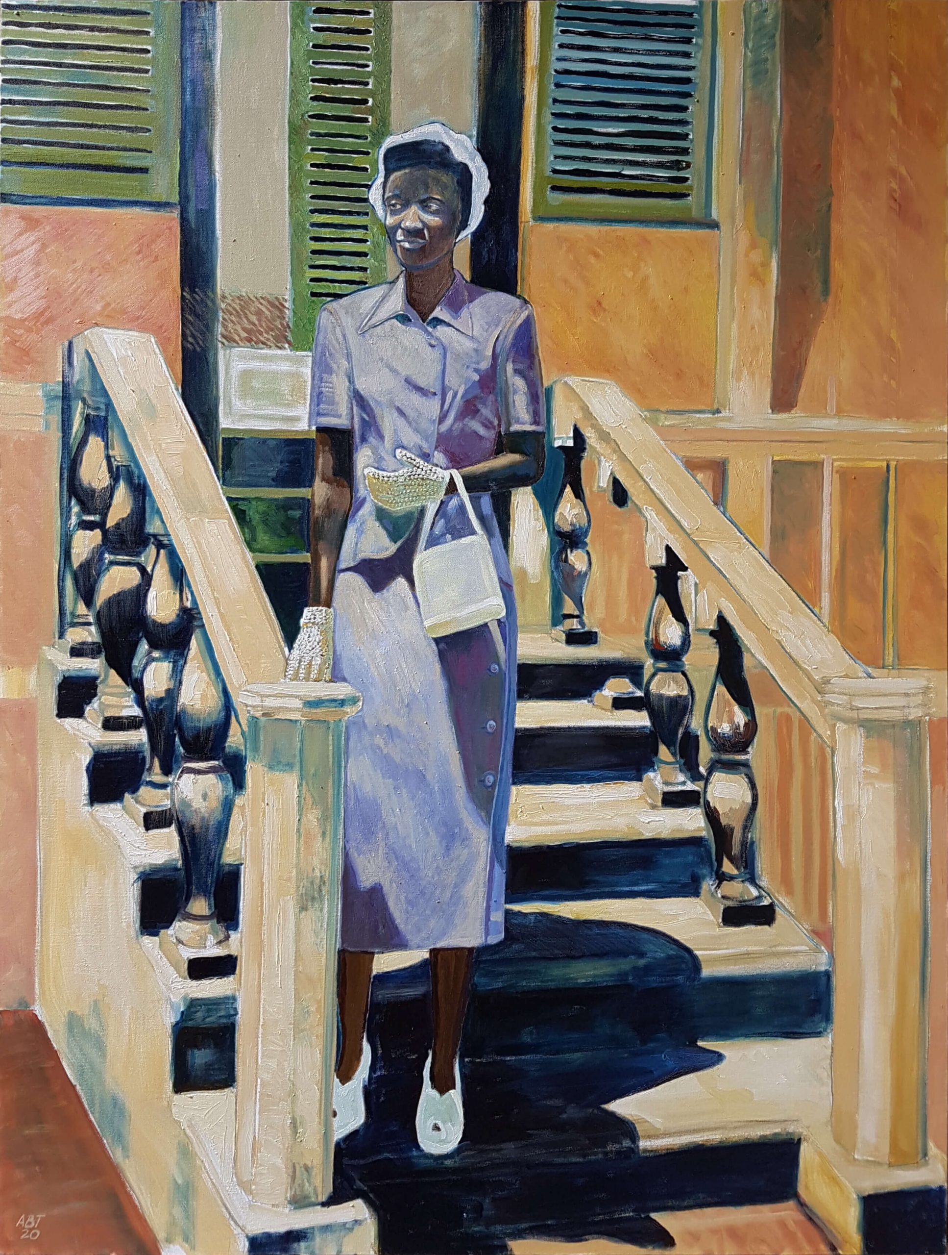 Arthur Timothy is an architect and painter whose works depict close family members and autobiographical events, specifically in Accra, Ghana where the artist was born, and Sierra Leone, where he lived until the age of 9. The paintings are inspired by small black and white family photographs and are imbued with vibrant colour, added from his memory and imagination, which update and bring life to the original imagery.