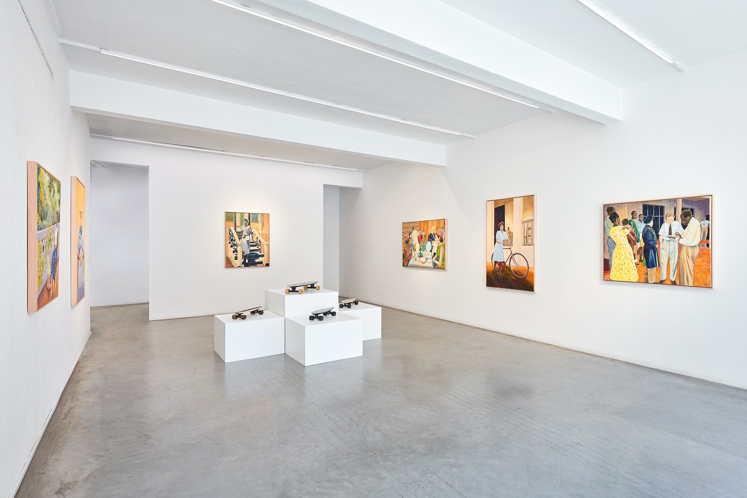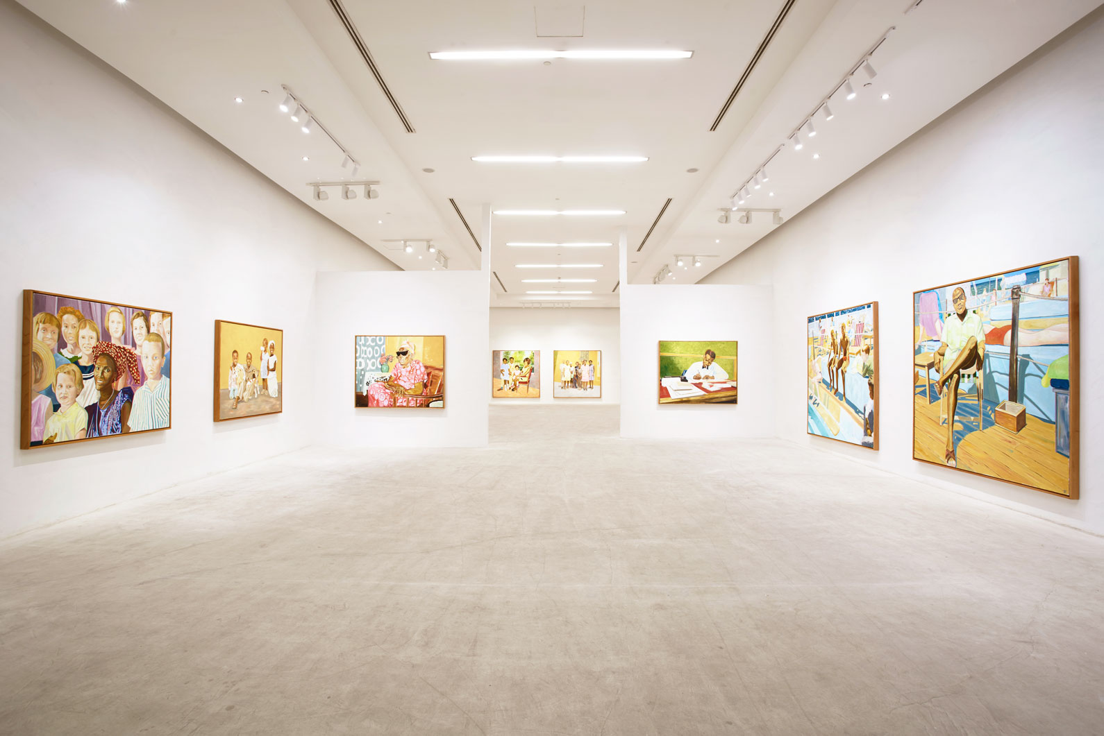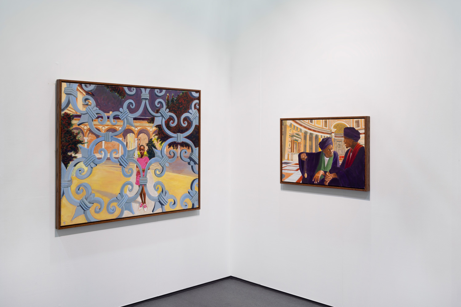Arthur Timothy is an architect and painter whose works depict close family members and autobiographical events, specifically in Accra, Ghana where the artist was born, and Sierra Leone, where he lived until the age of 9. The paintings are inspired by small black and white family photographs and are imbued with vibrant colour, added from his memory and imagination, which update and bring life to the original imagery.